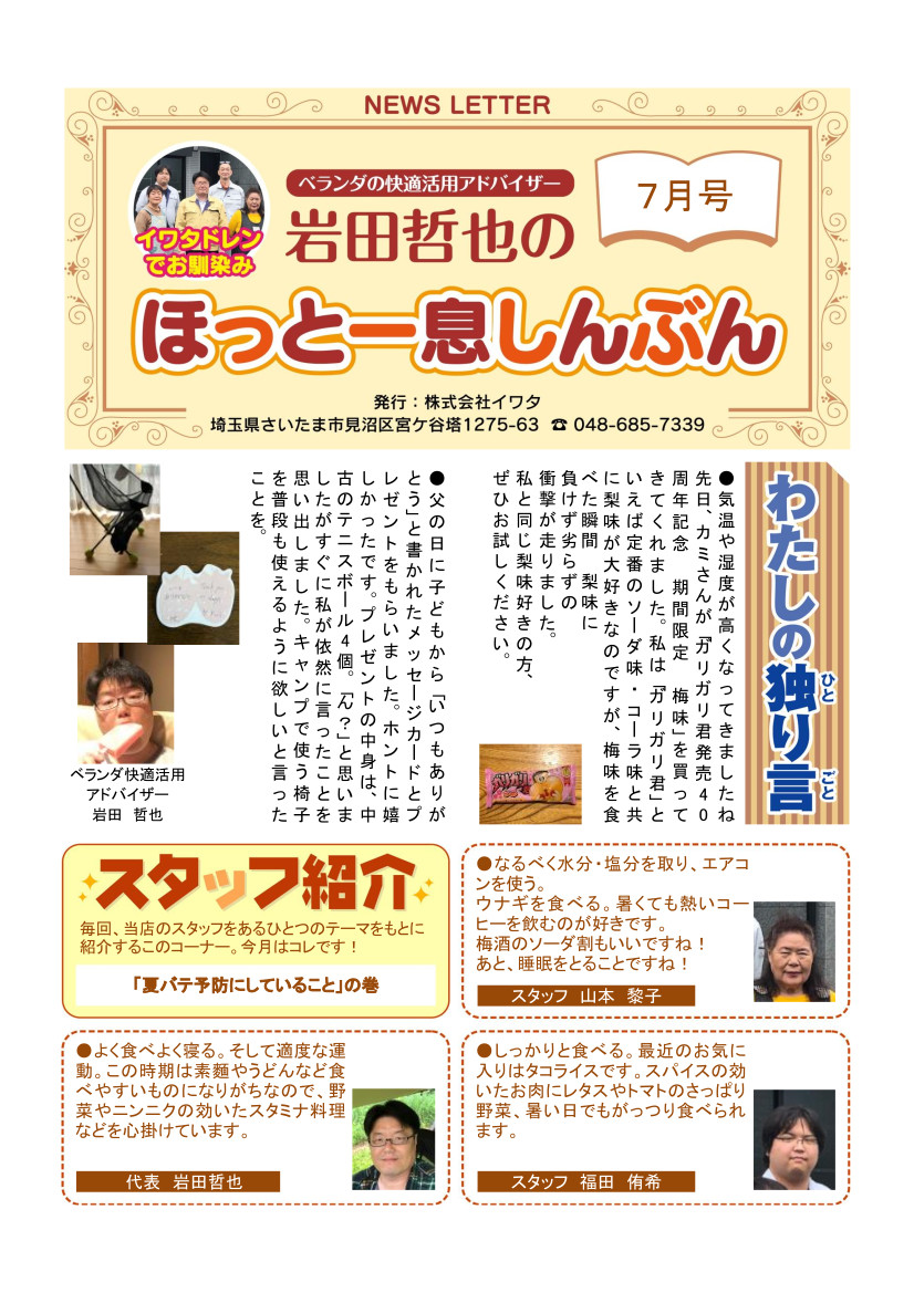 ベランダの快適活用アドバイザー 岩田哲也の ほっと一息しんぶん 7月号